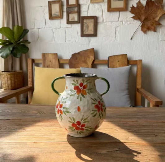 Each piece we create begins with a simple idea—often inspired by gardens, animals, flowers, and the gentle moments found in daily living. From cups and plates to vases and sculptural forms, our work is shaped by hand, painted by hand, and finished in small batches with care and patience.