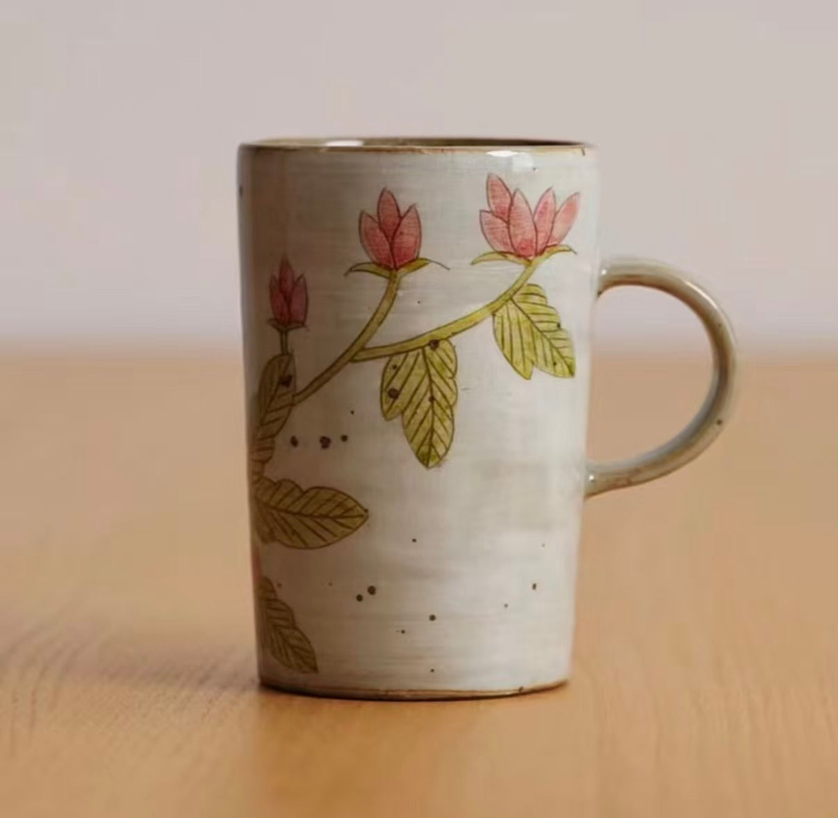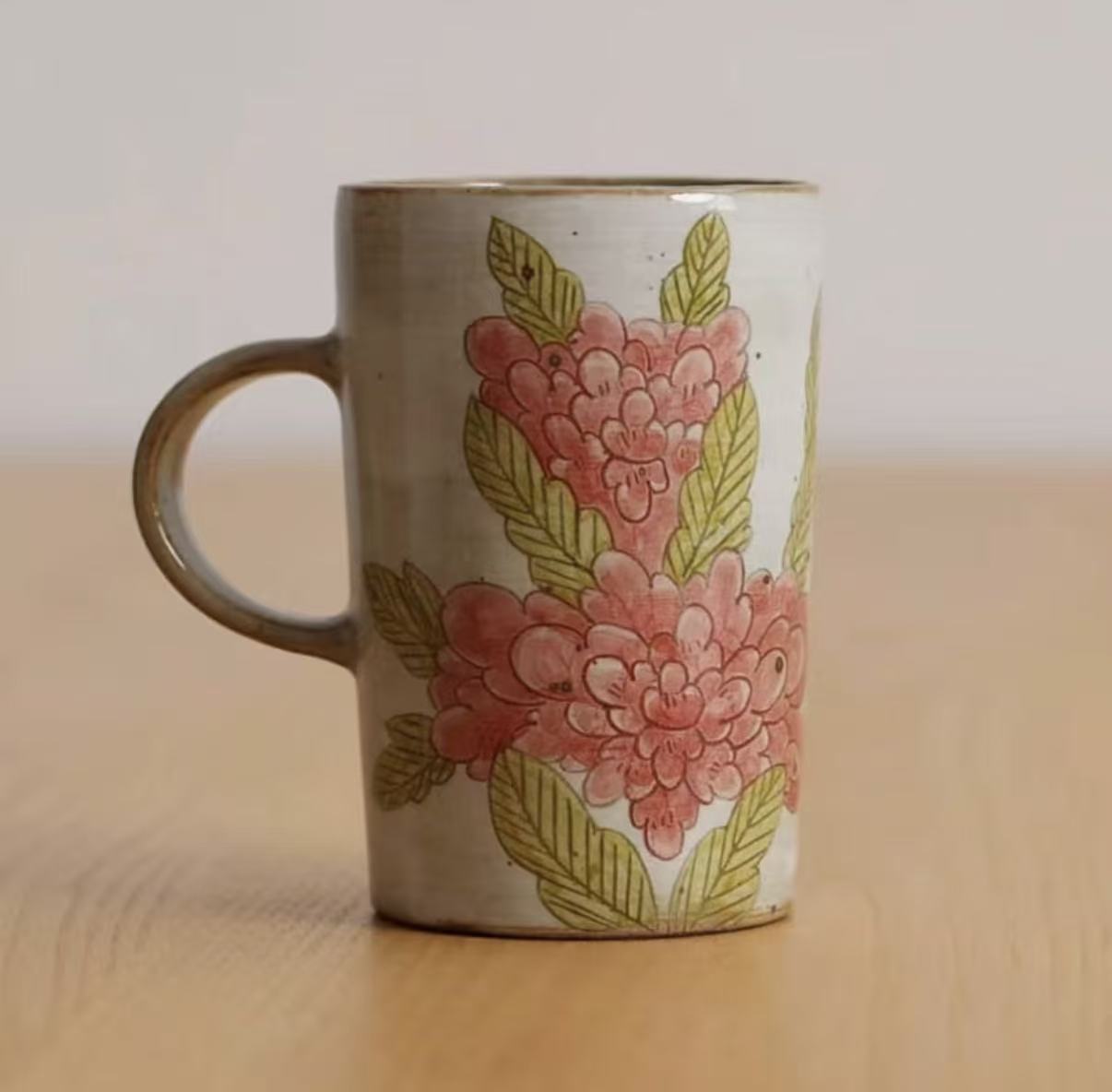Blush Peony Bloom – Artisan Ceramic Mug with Makeup Clay Finish