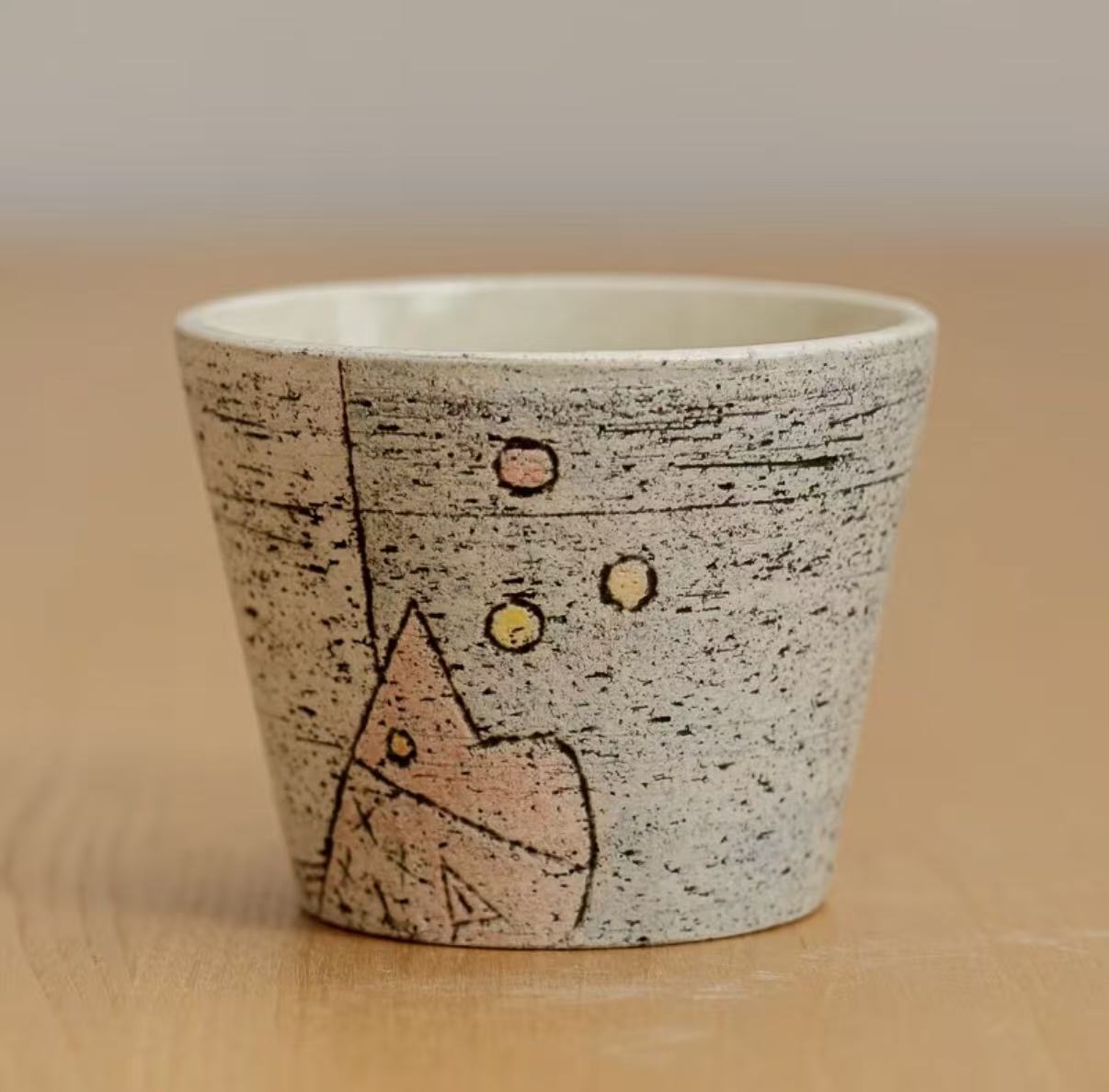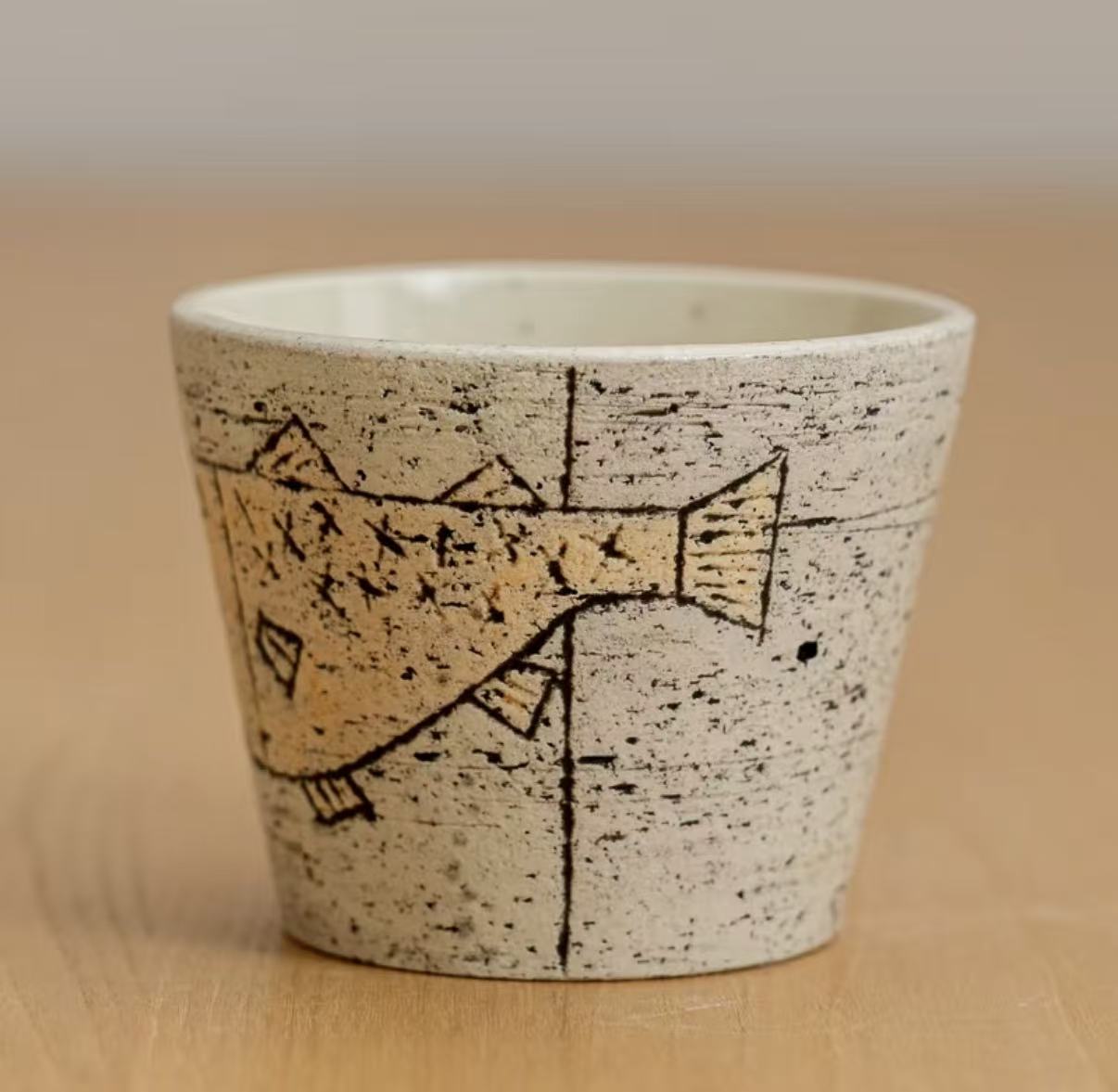Bubble Fish Carve – Hand-Carved Rustic Stoneware Guinomi Cup