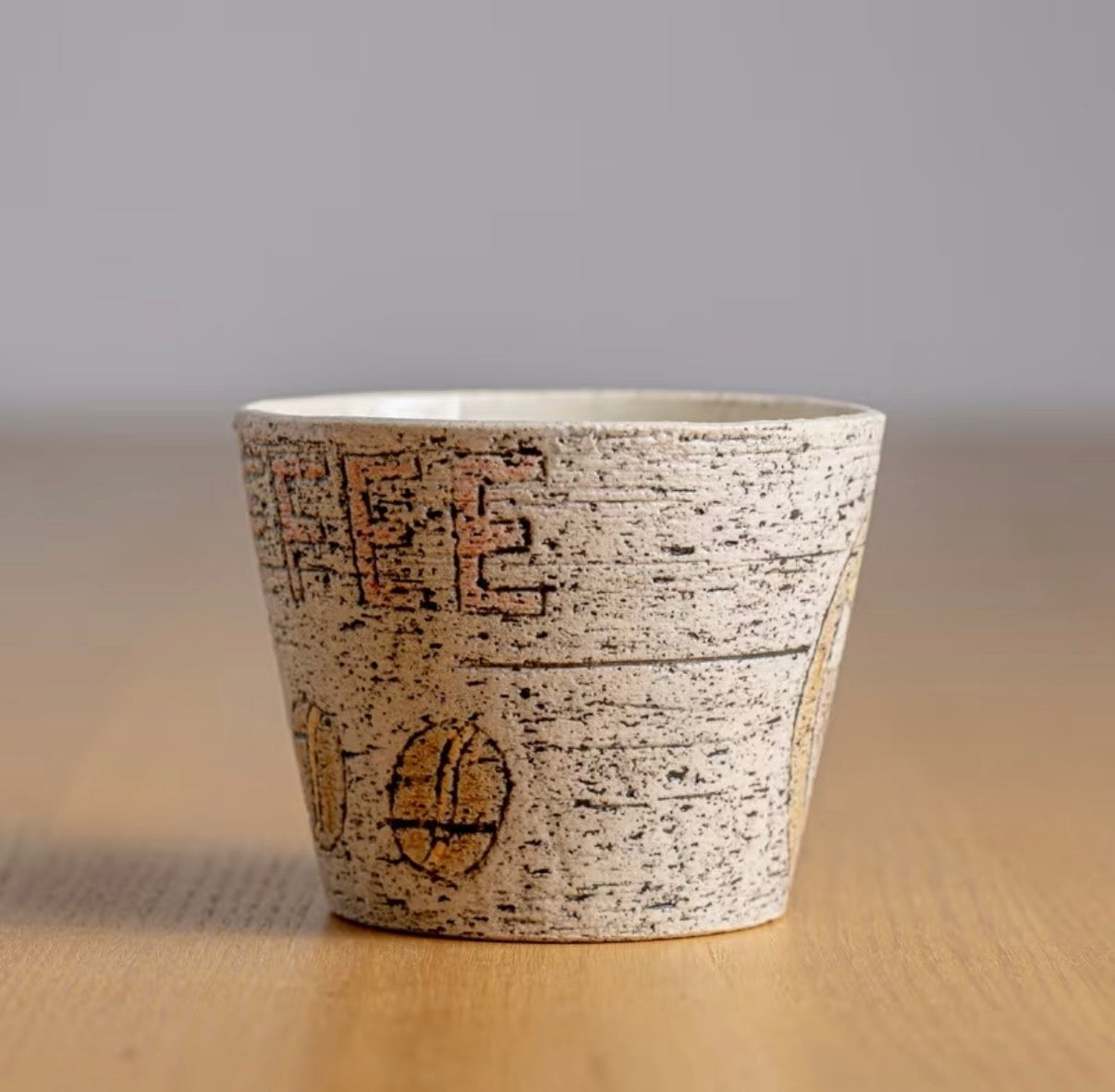 Coffee Ritual Carve – Hand-Carved Rustic Stoneware Guinomi Cup