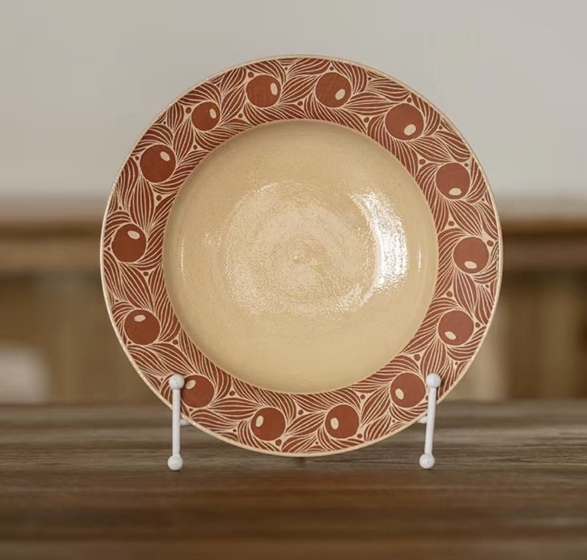Crimson Berry Carve – Rustic Stoneware Fruit Plate